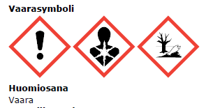 -Turvallisuus: Vain ulkoiseen käyttöön. Vältä laimentamattoman tuotteen joutumista iholle. Vältä kosketusta silmiin. Ei saa käyttää raskauden tai imetyksen aikana eikä alle 6-vuotiaille lapsille. Suojaa suoralta auringonvalolta ja lämmöltä. Pidä poissa lasten ulottuvilta.