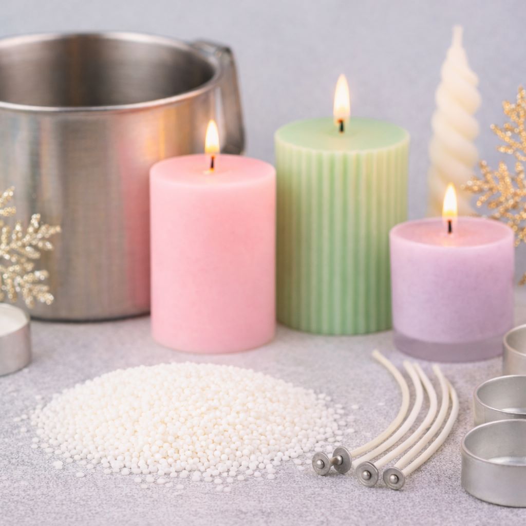 Valmis parafiinin ja steariinin seos kynttilöiden valmistukseen. Tämä kynttiläraaka-aine on suunniteltu helpottamaan valua ja antamaan kynttilälle hyvän rakenteen, tasaisen palamisen sekä siistin pinnan ilman, että käyttäjän tarvitsee itse mitata ja sekoittaa eri vahakomponentteja.