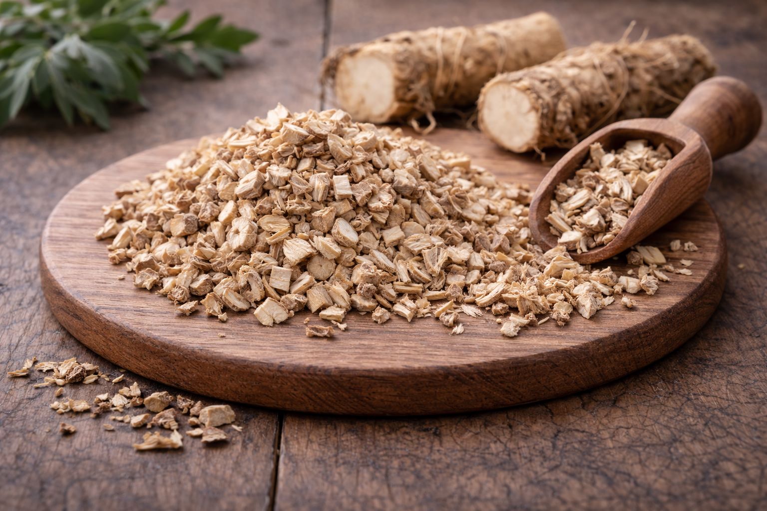 Kuivattu juuri on karkearakenteinen ja soveltuu pitkäkestoiseen uuttamiseen. Se on suosittu erityisesti balmeissa, salvoissa ja muissa luonnollisissa valmisteissa.