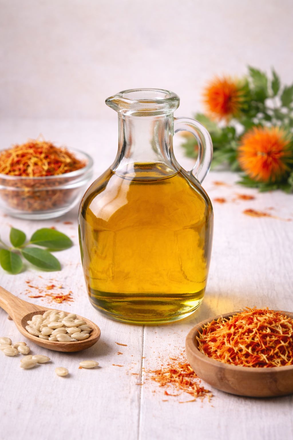 Safloriöljy on kevyt ja hyvin imeytyvä kasviöljy, jota käytetään laajasti ihonhoito- ja hiustuotteissa sekä voiteiden ja emulsioiden öljyfaasissa. Se tekee koostumuksesta helposti levittyvän ja jättää iholle pehmeän, ei-tahmean tuntuman.