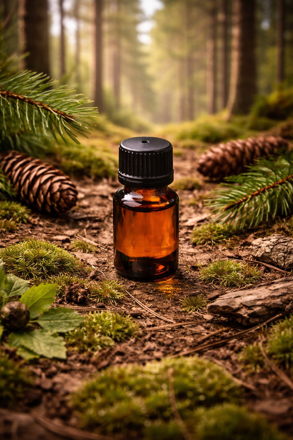 Mäntymetsä on raikas ja pihkainen metsäinen tuoksuöljy, jossa korostuu männyn vihreä sävy. Sopii luonnonläheisiin tuotteisiin.