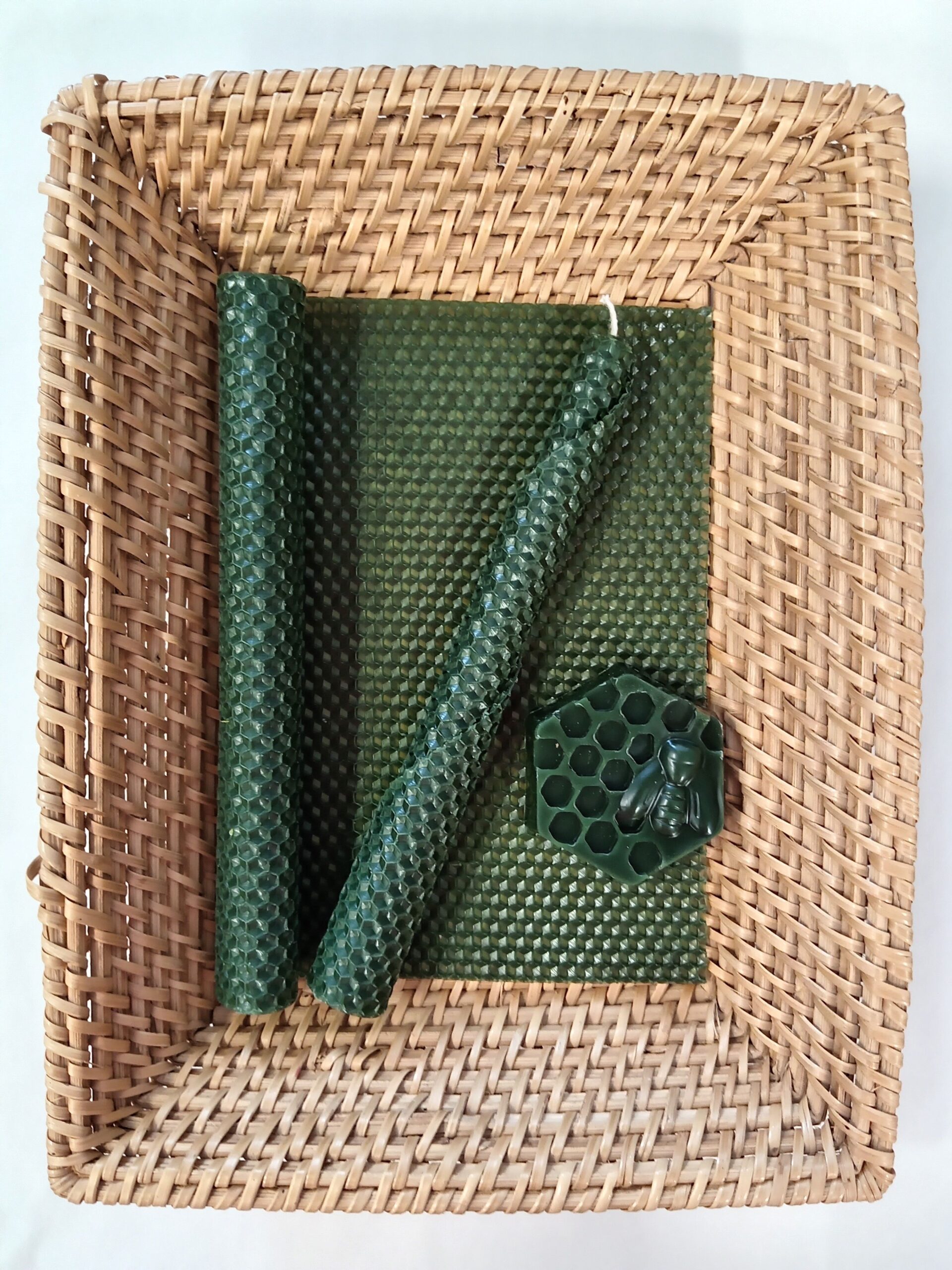 UUTUUS VÄRI! Lahtisen mehiläisvahakynttilälevy Tumma Vihreä